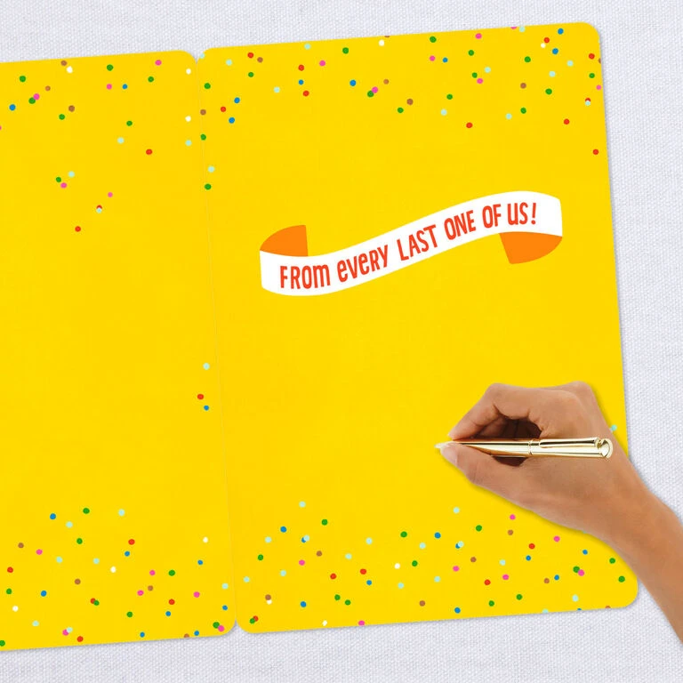 Cute kitty cats and puppy dogs dressed in b-day party hats deliver big happy birthday wishes that can’t be missed! Giant 11×16 birthday card offers plenty of space for the whole group to add their own birthday shout-outs. Glossy accents and pom-pom attachments add a fun touch. Great for coworkers’ celebrations, kids’ birthday parties, milestone birthdays and more.