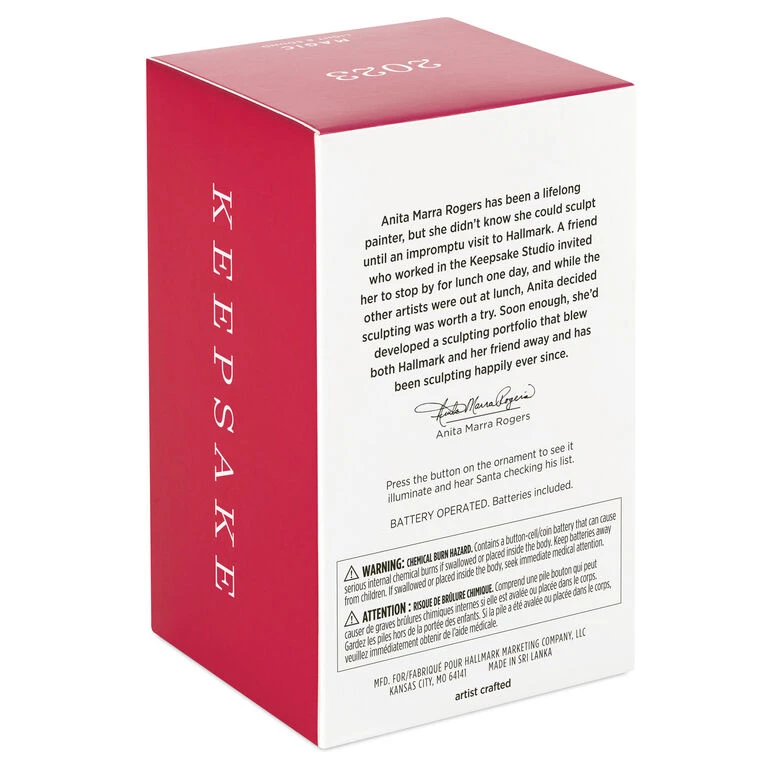 - Key Features: Press the button on the Magic Light and Sound ornament to see it illuminate and hear Santa checking his list.
