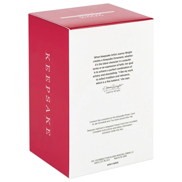 - Key Features: Connect this Magic Motion ornament to Hallmark’s Keepsake Power Cord (sold separately) to see Snowball and Tuxedo skate around the rink.