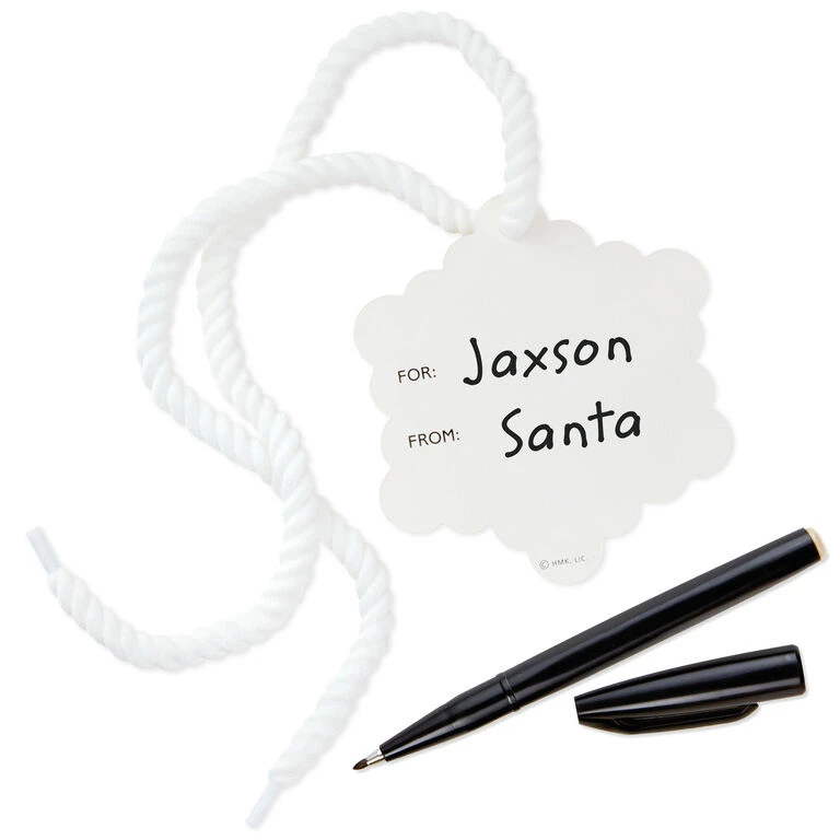 - Pack includes 2 giant plastic Christmas gift bags with white yarn ties and die-cut snowflake gift tags included.